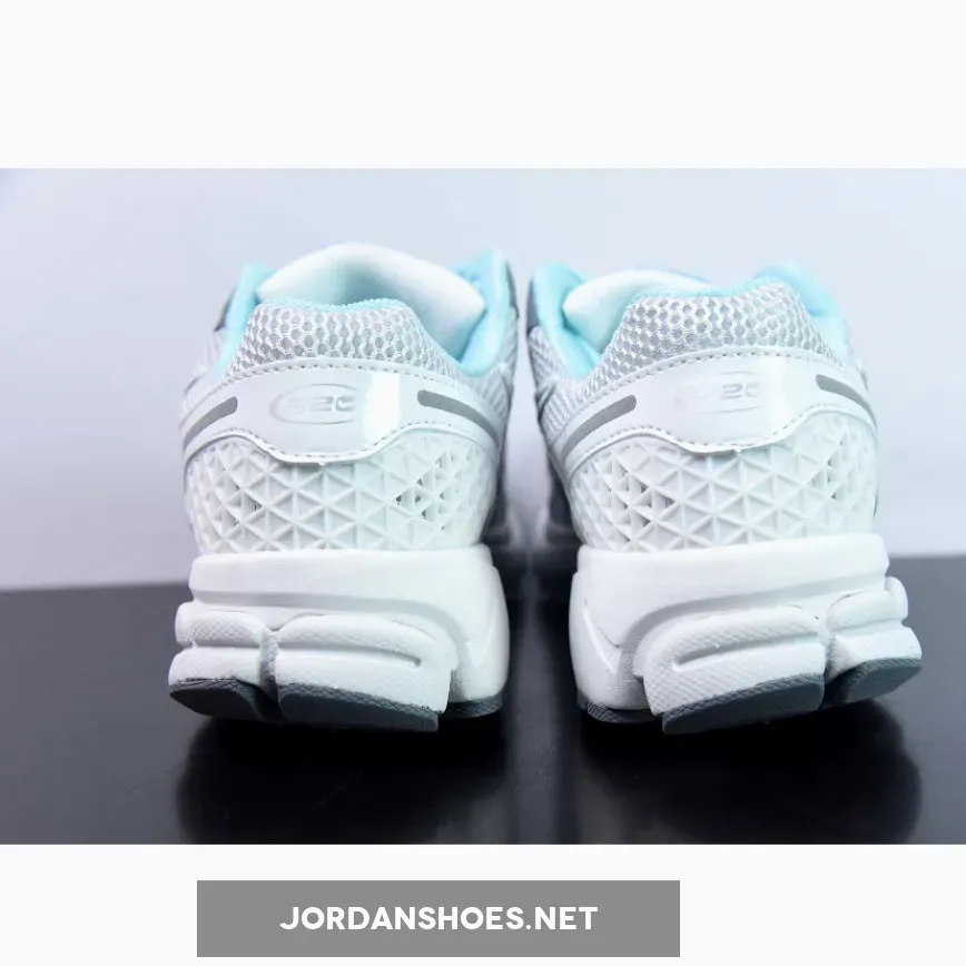 Much like the silhouette’s “Vast Grey” version, a majority of the upper is done up in white but subtle flashes of baby blue poke out through the laces and midsoles.