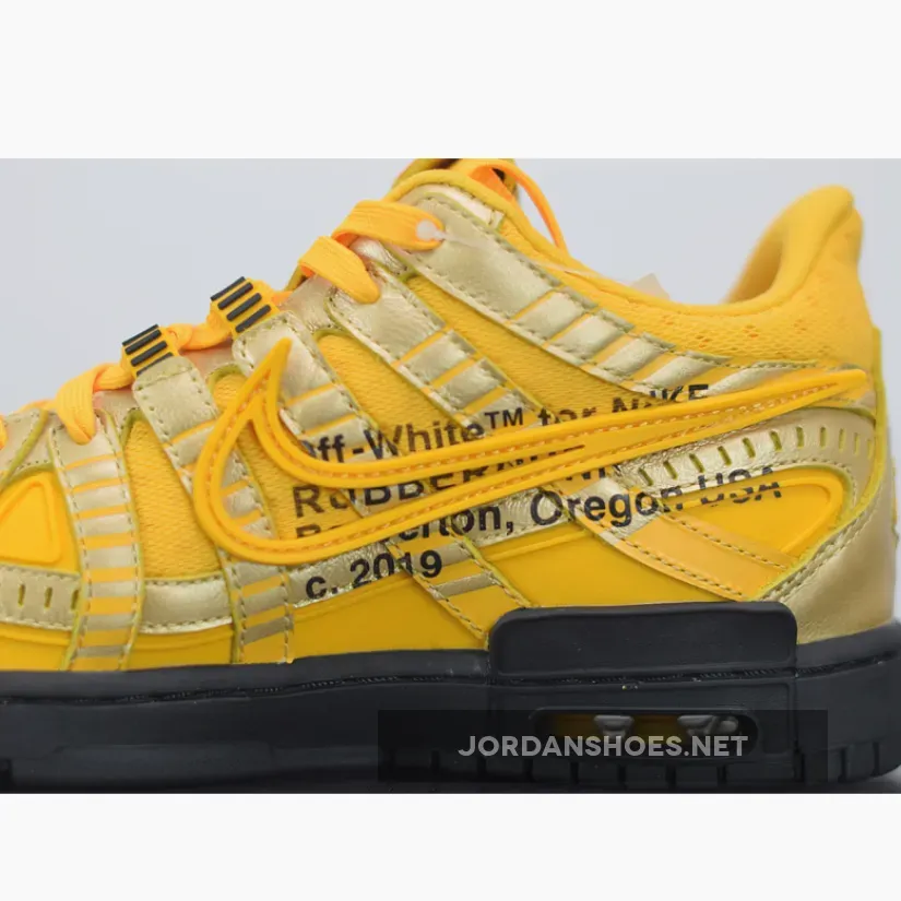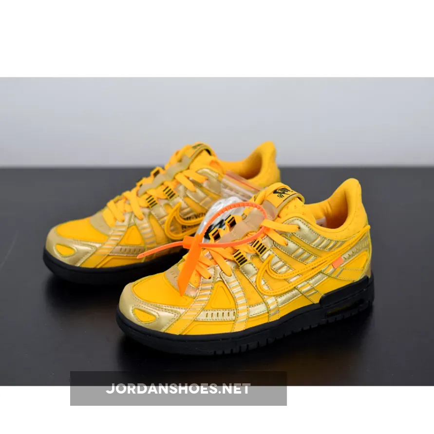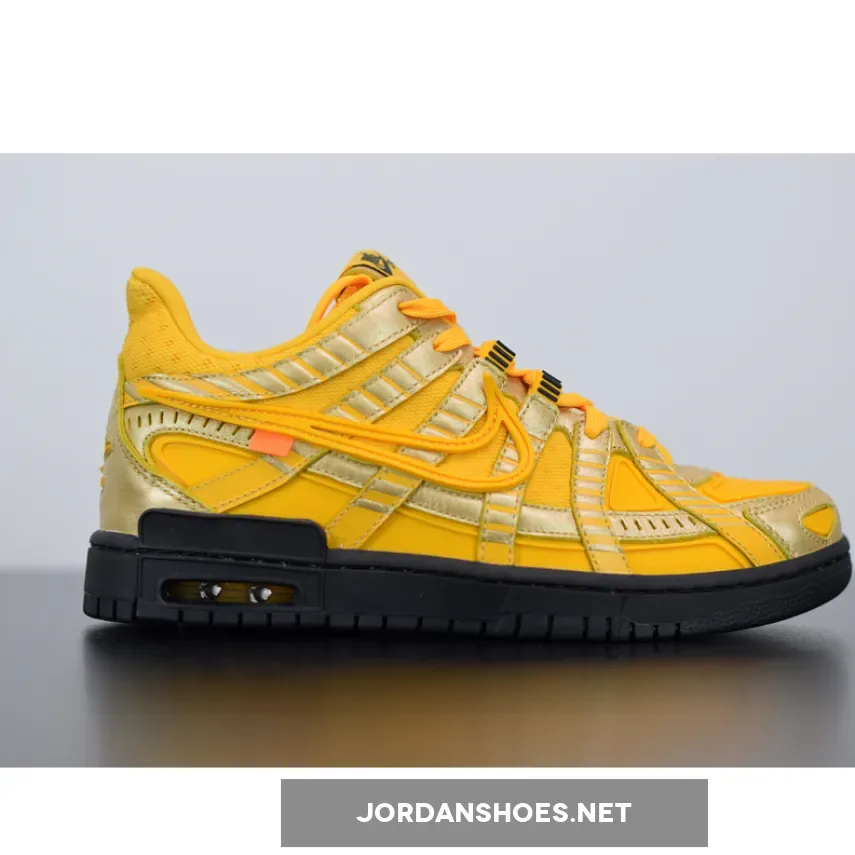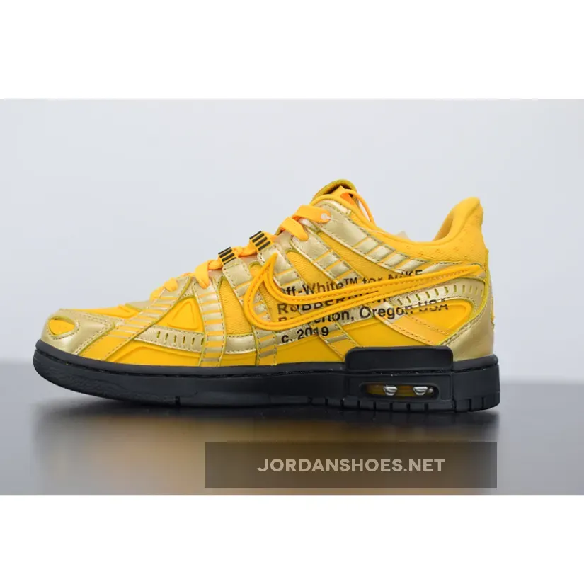 In fact, the multi-talented creative has even gone so far as to engaging with his audience on Twitter and asking them which silhouette he should work on next. But before those come into fruition, Abloh has a few colorways of his newly designed Rubber Dunk set to arrive during the Spring/Summer season. After being revealed in blue/orange and black/green colorways thus far, the lifestyle-focused model’s third member has just revealed its best look yet. Dubbed the “University Gold” option, this forthcoming variation crafts its foundational layers in titular hues, and adds golden notes infused into the toe tips, throat, as well as on its various slit-styled paneling. Additional color-blocking is executed in stark black along the traditional medial side text, treading, and tongue branding, and almost evoke connections to the popular Off-White industrial belt that once was popularized on the fashion scene in recent years.