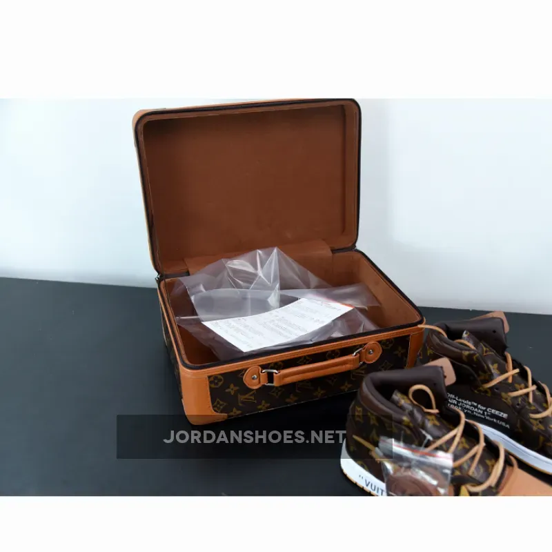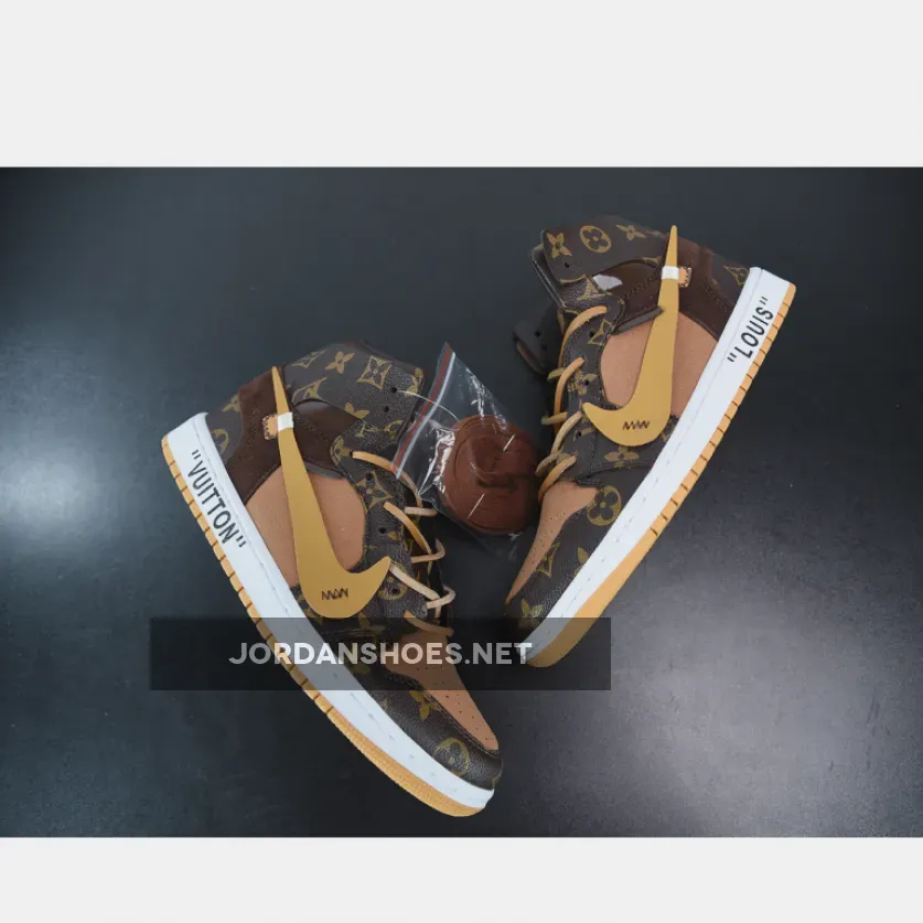 Phenomenal collab! ? Louis Vuitton’s iconic monogram meets Air Jordan’s timeless design in a tonal brown dream. ? The exposed stitching and ‘L’ & ‘V’ midsole are lit. ? Highly recommended for any sneakerhead or LV enthusiast! ? #OFFWHITExAirJordan #LuxurySneakers #LimitedEdition ?✨