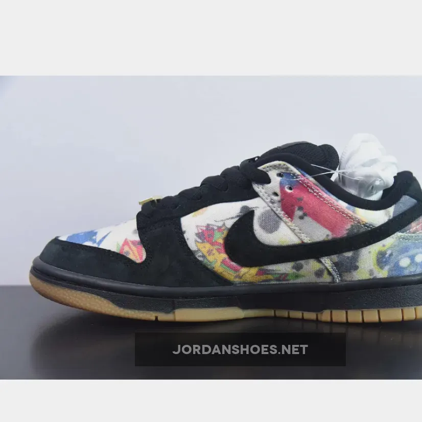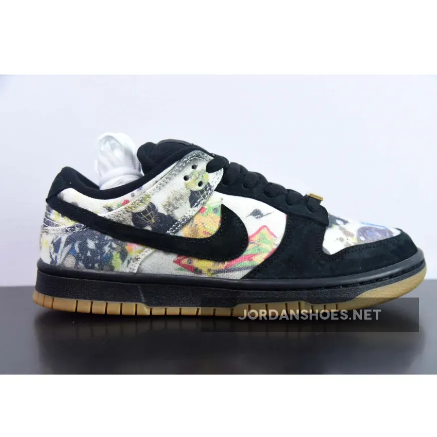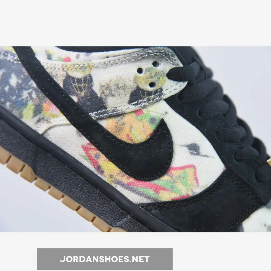 This offering of the Supreme x Nike SB Dunk Low upper is coated in a black upper crafted from suede and canvas materials. Highlighting the sneaker is Rammellzee’s artwork on the toe box, quarter panel, collar, and heel overlay. Other details includes Black suede overlays on the forefoot, eyestay, and Swooshe. Like past collabs, the shoe features a gold “SUPREME” lace dubrae that includes a co-branded hang tag. A Black midsole atop a Gum rubber outsole completes the design.