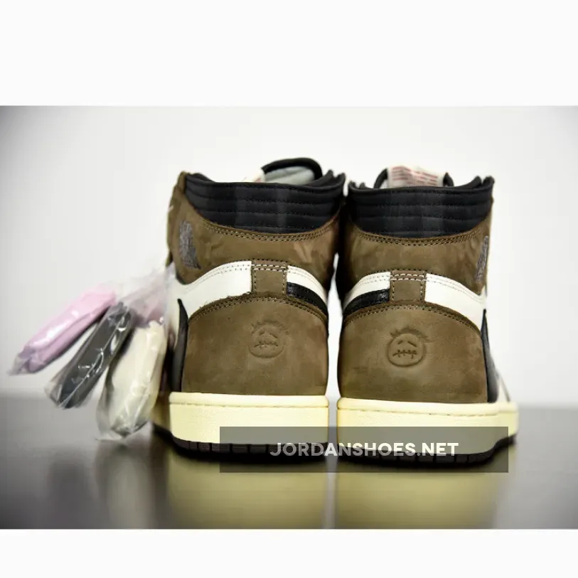 this eccentric creation boasts an enlarged reverse Swoosh on the lateral side, with the belly of the logo disappearing into the midsole. The “Cactus Jack” logo is also featured behind the Swoosh on the medial side, while the heel displays a debossed face logo. Additionally, the ankle reveals a double-layered construction with sporty stitching on the exterior that doubles as a secret pocket, while a supple tumbled leather and brown suede pair up to construct the upper of the Air Jordan 1.