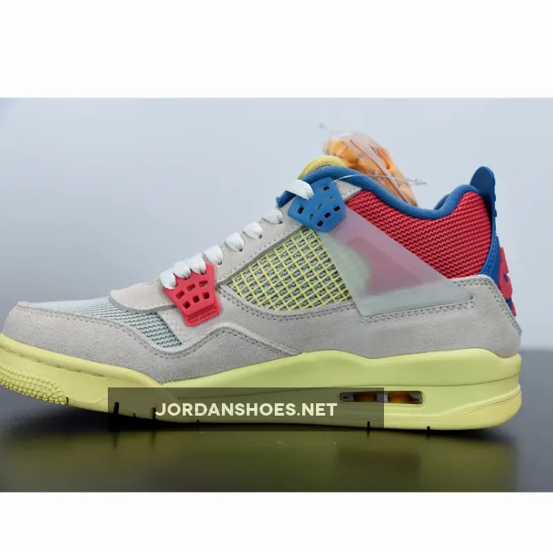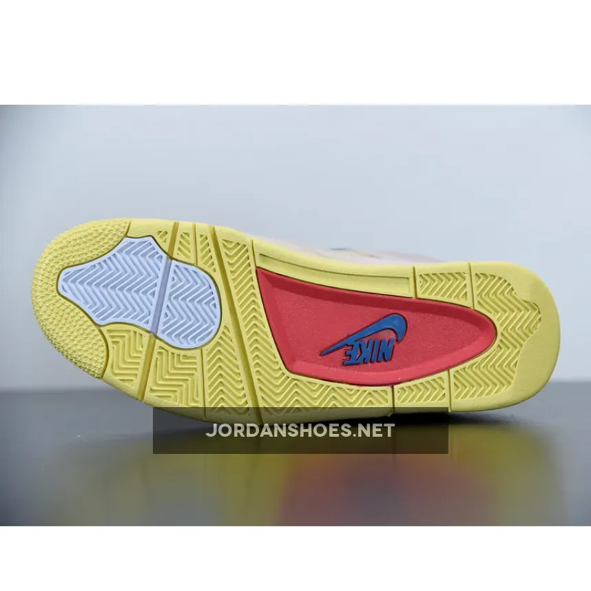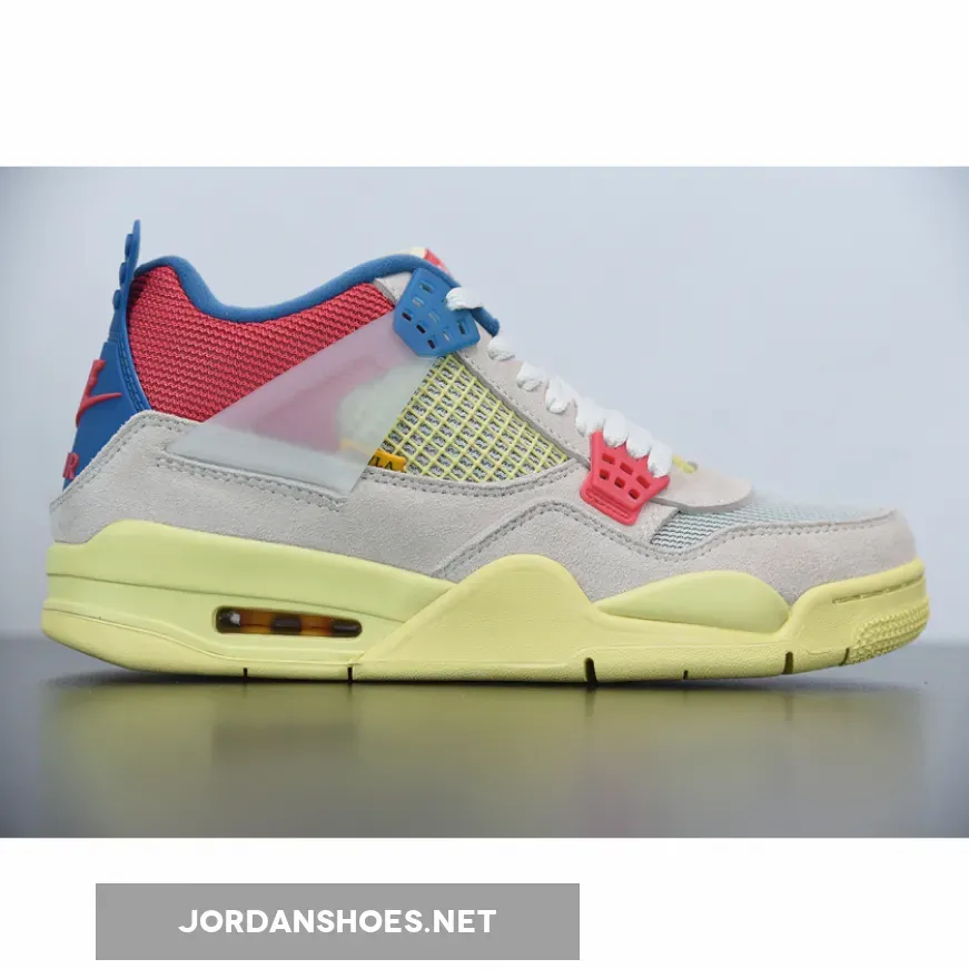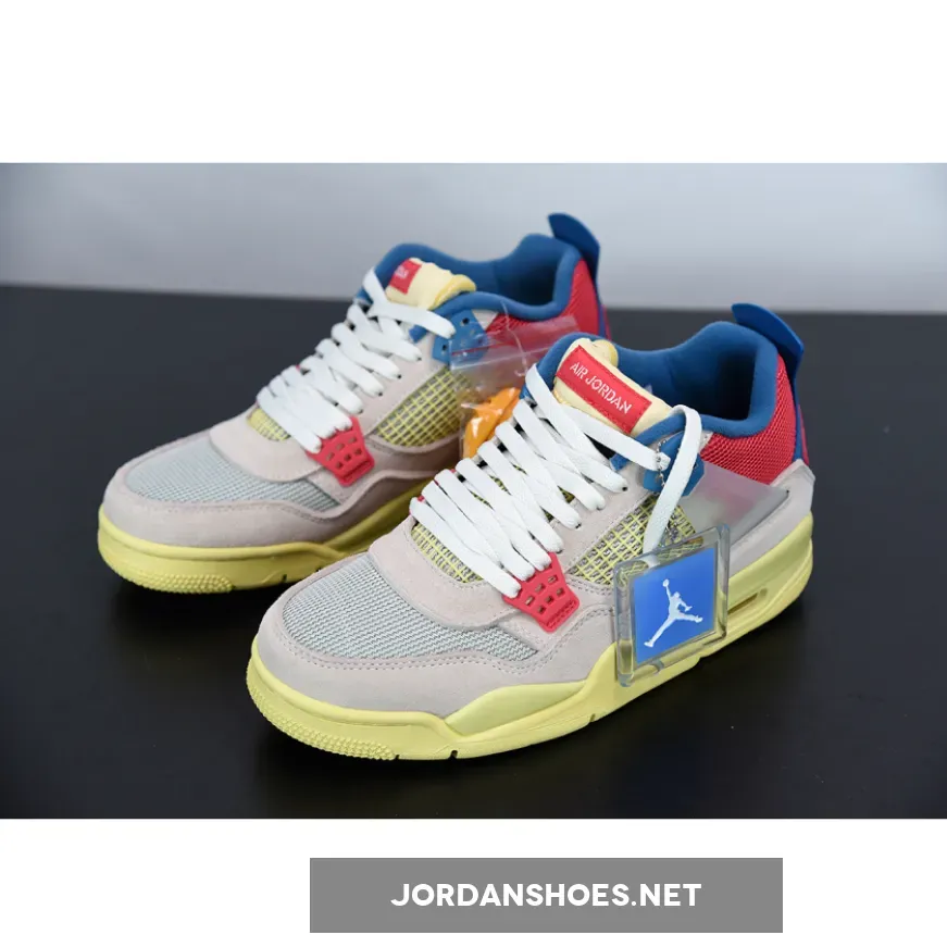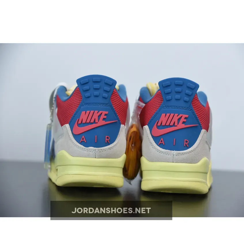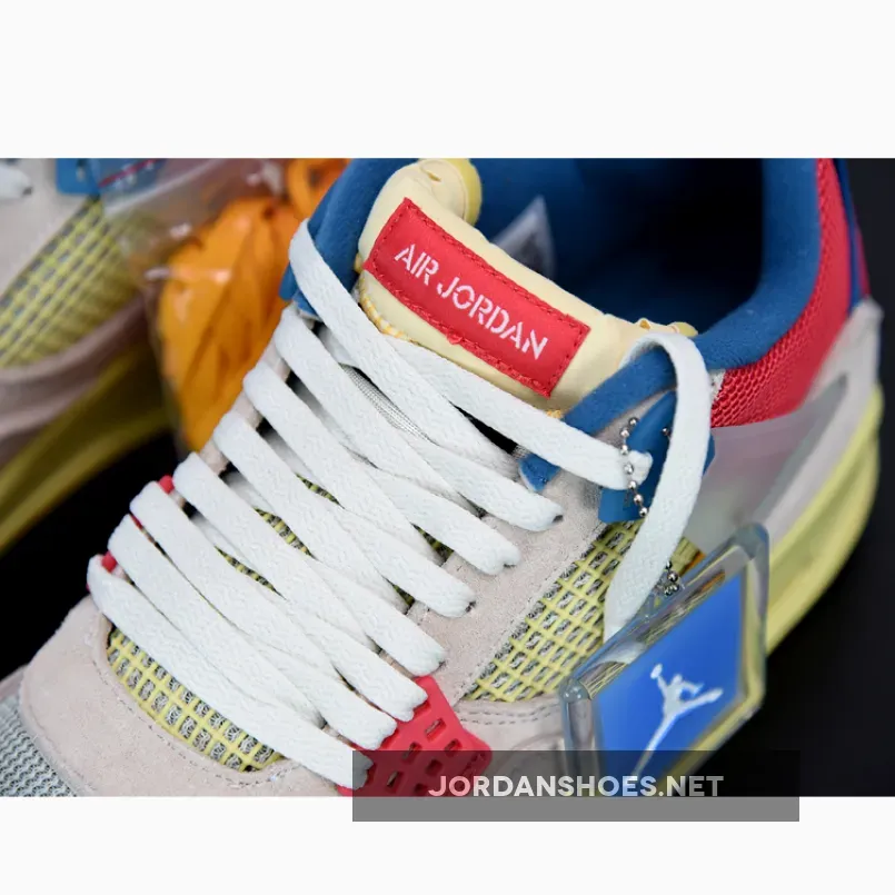 The Air Jordan 4 was famously designed by Tinker Hatfield and is one of the best Nike Air Jordan silhouettes of all time. The collab follows a sail, blue and red colorway, with the translucent wings keeping the laces firmly in place.