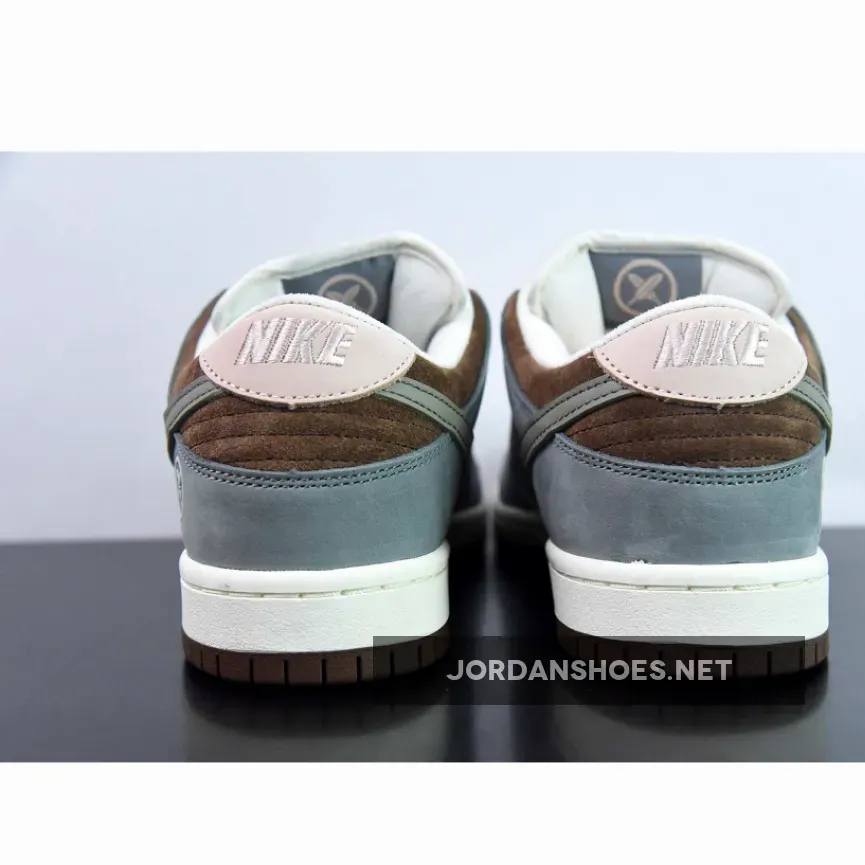 The Yuto Horigome x Nike SB Dunk Low is constructed out of leather, suede and mesh. It features a White base, Grey overlays and Chocolate Brown detailing around the collar and rubber outsole. Toe boxes, tongues and quarter panels are left colorless exteriors and come neighbored by supply suede overlays and smooth leather Swooshes that are drowned in a muted gray. The Japanese skater’s moniker replaces the usual shoe silhouette’s name under the tongue’s Nike SB branding while a cross-feather insignia is stamped to the lateral heels. A subtle touch of dusty pink arrives on the heightened parts of the heel while brown accents through the collars. Down below, the midsoles are designed with a clean white finish while the bottoms are done up with an all-brown paint job.